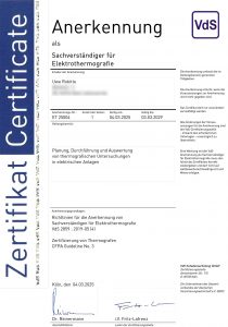 Prüfsachverständiger für Sicherheitsstromversorgung und Sicherheitsbeleuchtung, Brandmelde- und Alarmierungsanlagen, VdS-anerkannter Sachverständiger für Elektrothermografie, VdS-Klausel 3602, Blitzschutz und EMV sowie PV-Anlagen