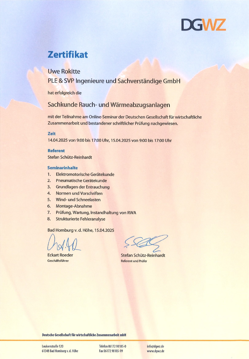 Prüfsachverständiger für Sicherheitsstromversorgung und Sicherheitsbeleuchtung, Brandmelde- und Alarmierungsanlagen, VdS-anerkannter Sachverständiger für Elektrothermografie, VdS-Klausel 3602, Blitzschutz und EMV sowie PV-Anlagen